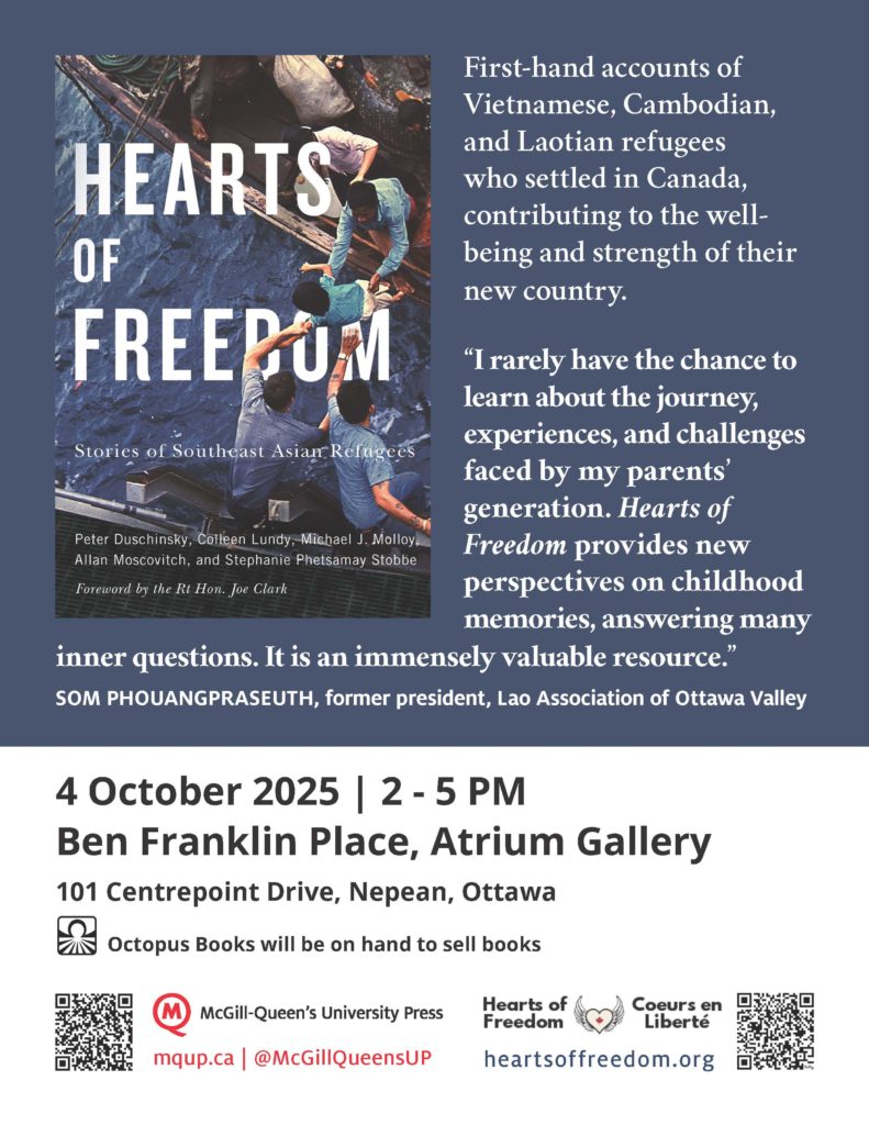 First-hand accounts of Vietnamese, Cambodian, and Laotian refugees who settled in Canada, contributing to the wellbeing and strength of their new country. “I rarely have the chance to learn about the journey, experiences, and challenges faced by my parents’ generation. Hearts of Freedom provides new perspectives on childhood memories, answering many inner questions. It is an immensely valuable resource.”
